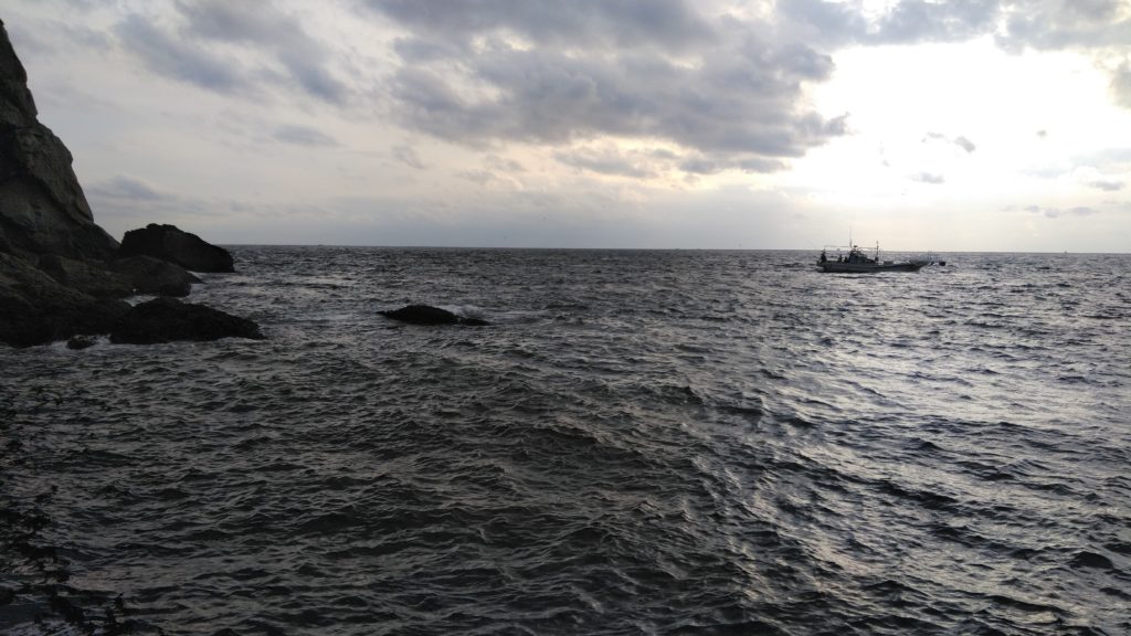 夜行のフェリーで眠って、早朝に着いたらお迎えに来てもらえて、そのまま朝から磯に立てるところ。