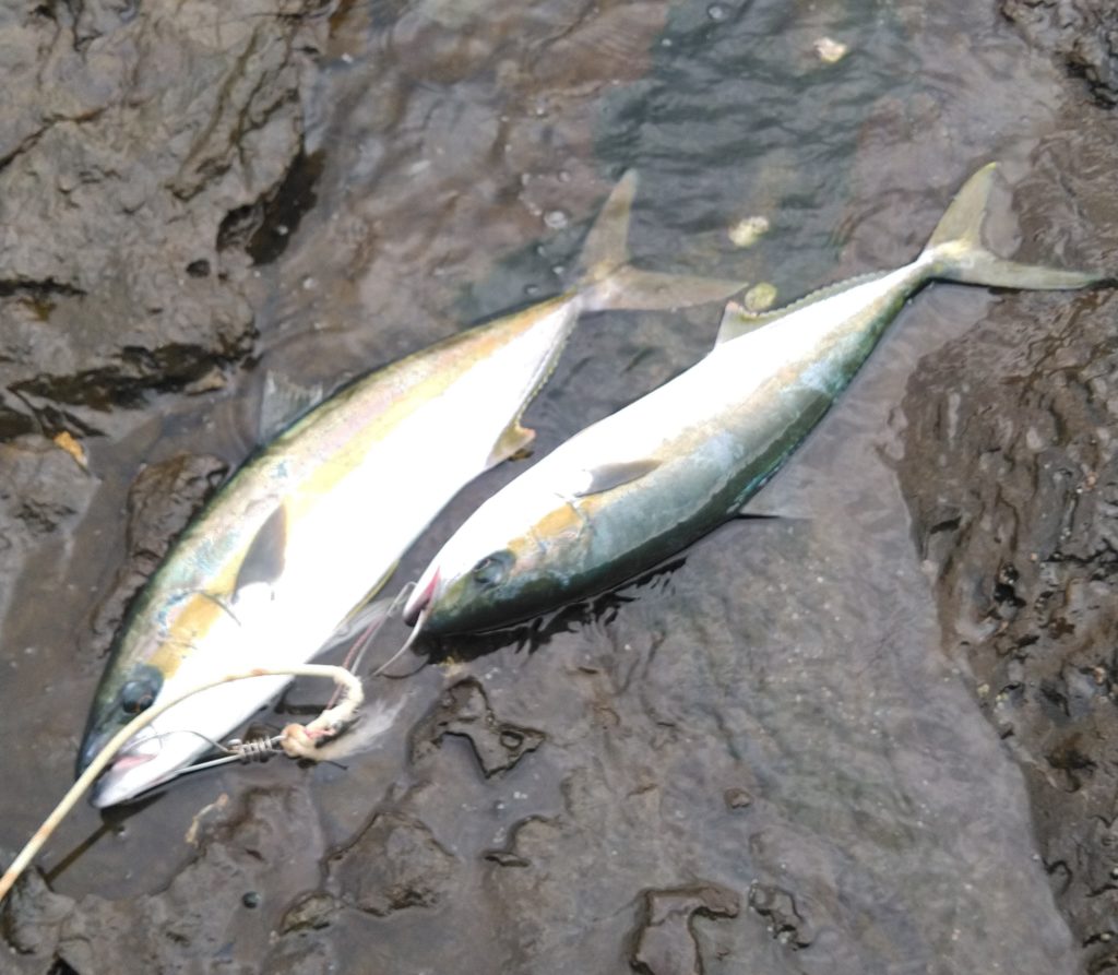 何度も派手に食い直してヒットしたのは、ヤズ。3キロぐらい。ヒットルアーはラピード130