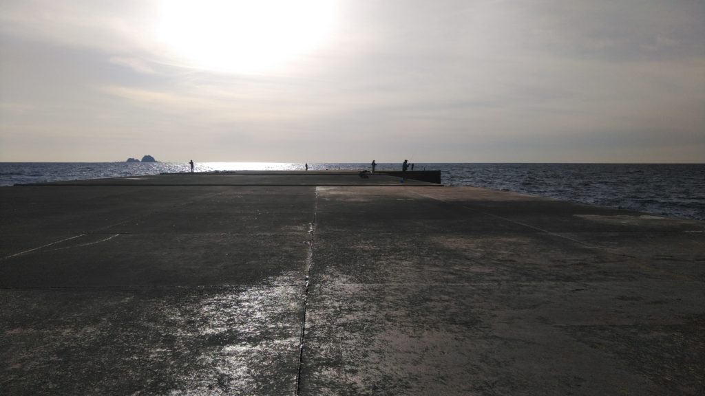 夕方に温泉に行く途中に、前浜港の堤防に立ち寄ってみた。