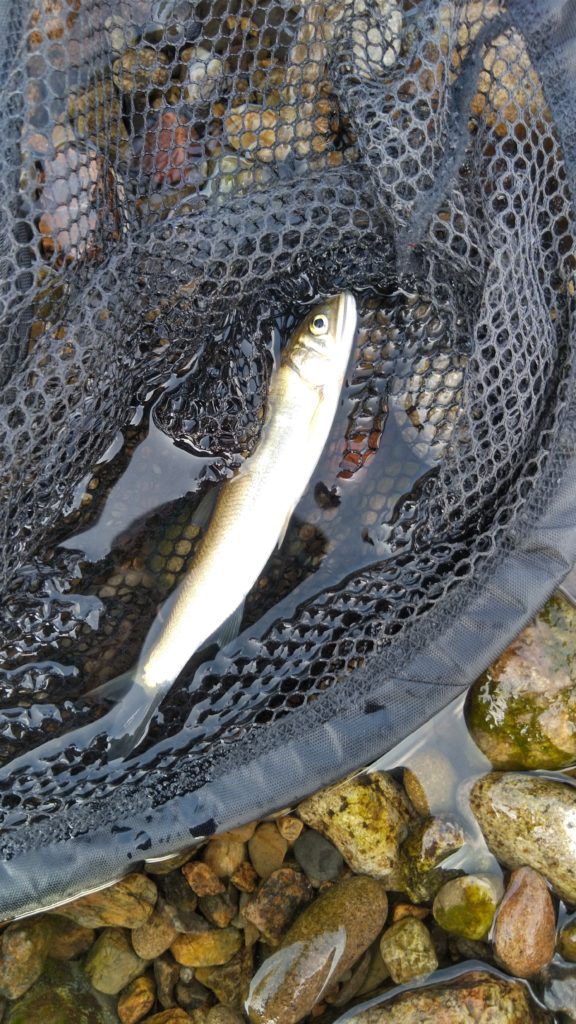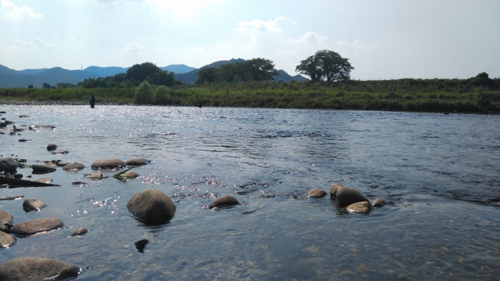 おひとり、挨拶をして立ち話をさせていただいた方がいて、お話を聞くと、今年はサイズが小さくて、まだ瀬の中よりもトロッとした流れの中に数がいるよねー、とのお話。