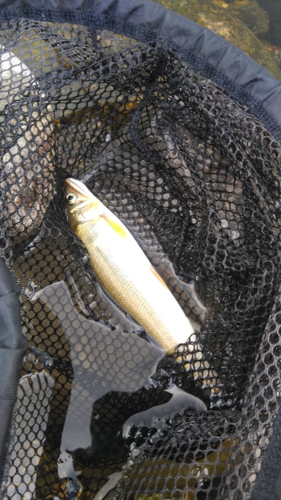 その方は、ガンガン釣り下って移動してゆくスタイル。帰りがけに7、8尾の釣果を見せていただいた。